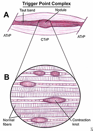 М'язові вузли (або міофасціальні тригерні точки) – це невелика ділянка в м'язовій тканині, в якій відбувається спазм, що викликає рефлекторний біль в зоні відаленій від цього місця.